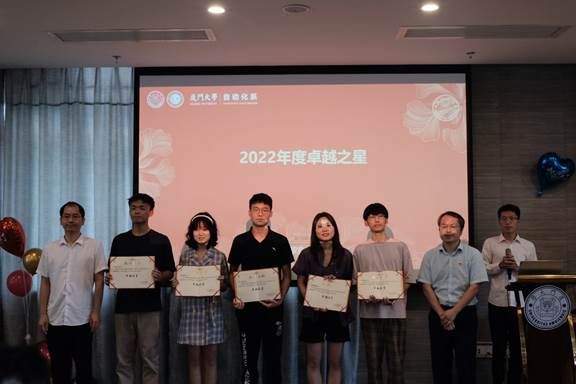 2021年4月厦门大学百年校庆之际,为促进自动化学科的发展,自动化系倡议设立了厦门大学“自动化卓越人才发展基金”,得到了广大系友和社会各界人士的踊跃捐助和支持。设立这个基金的一个重要目的是培养和奖掖我系历届卓越人才。今年,2022届硕士生关劼文、林婷婷,2022届本科生金世豪、郝颖、王少琪获得自动化“卓越之星”的荣誉称号和奖金,航空航天学院常务副院长尤延铖教授和自动化系主任洪文兴教授为他们颁发荣誉证书。