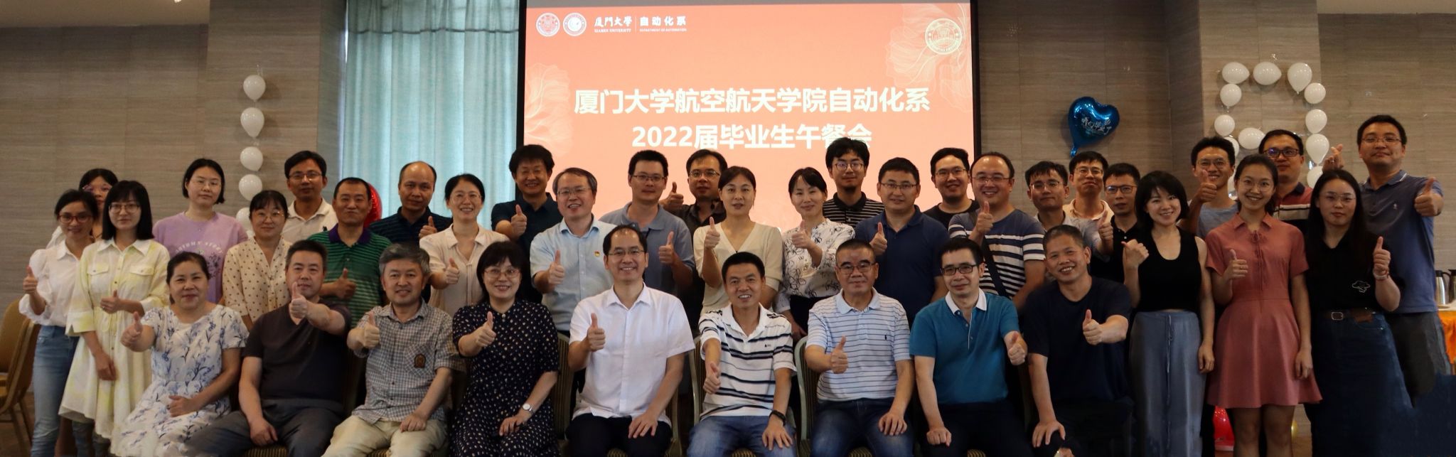 金秋相聚,盛夏惜别,又是一年毕业时。2022年6月22日,厦门大学航空航天学院自动化系举办2022届毕业生午餐会,以欢送毕业生。厦门大学航空航天学院常务副院长尤延铖教授、副院长王颖教授、易联众集团副董事长兼执行总裁黄文灿先生、厦门大学出版社社长郑文礼教授、自动化系全体教师、工程技术中心相关老师、学院学生工作组老师、行政支撑中心老师、以及自动化系2022届的本科、硕士、博士毕业生们参加活动。