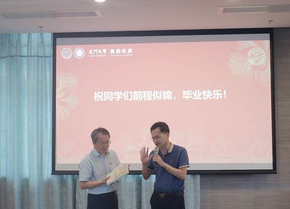 活动上,厦门大学出版社社长郑文礼教授(杰出系友)赠予我系《厦门大学百年校史》、《为吾国放一异彩:厦门大学与伟大祖国》等书籍。学院常务副院长尤延铖教授致辞,祝毕业生们前程似锦!