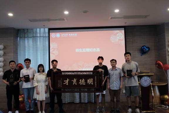 接下来,师生互赠纪念品。2018级本科生班主任杨帆老师和关锦婷老师代表系里接收了同学们赠送的“明德育才”匾额,并回赠每位同学一枚刻有厦门大学校徽、航空航天学院院徽、自动化系名称、同学姓名及学号的戒指。