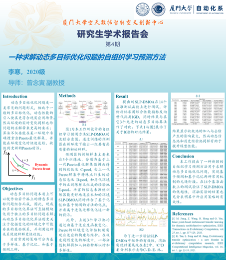 2022年6月28日上午,厦门大学空天数据智能交叉创新中心召开第4期研究生学术报告会。本期报告会由学生自主担任程序委员会主席,由航空航天学院王颖、洪文兴、曾念寅、杨帆、林冬云等研究生导师出席,并总结点评。