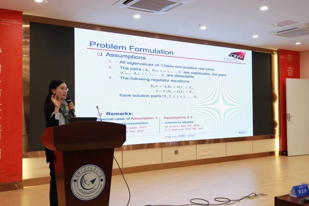 最后,刘璐对基于事件触发控制的异构线性多智能体系统的协同输出共识问题进行演讲。他简要介绍了事件触发的控制方法,并针对所考虑的系统提出了一种具有自适应事件触发机制的完全分布式事件触发控制策略。