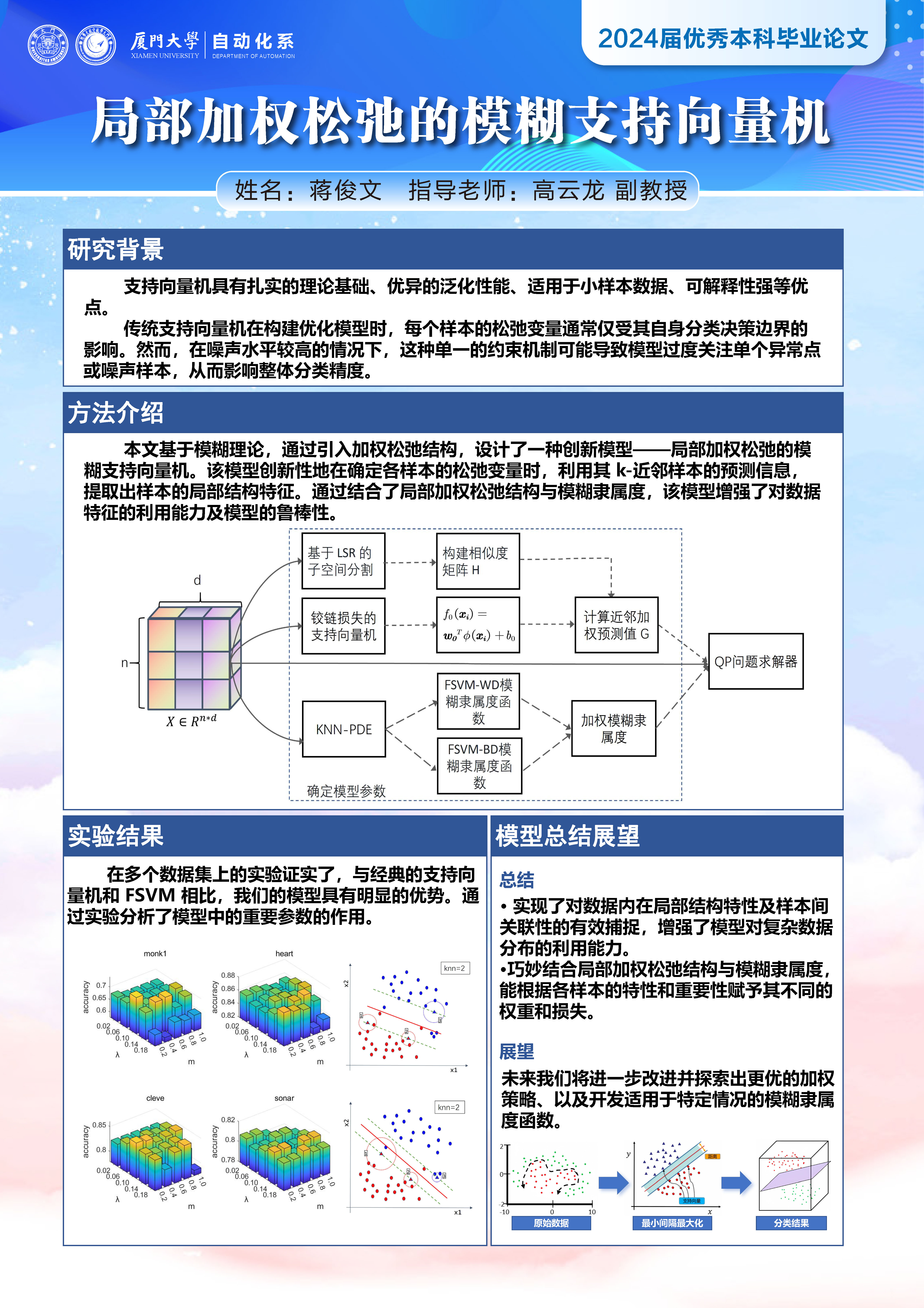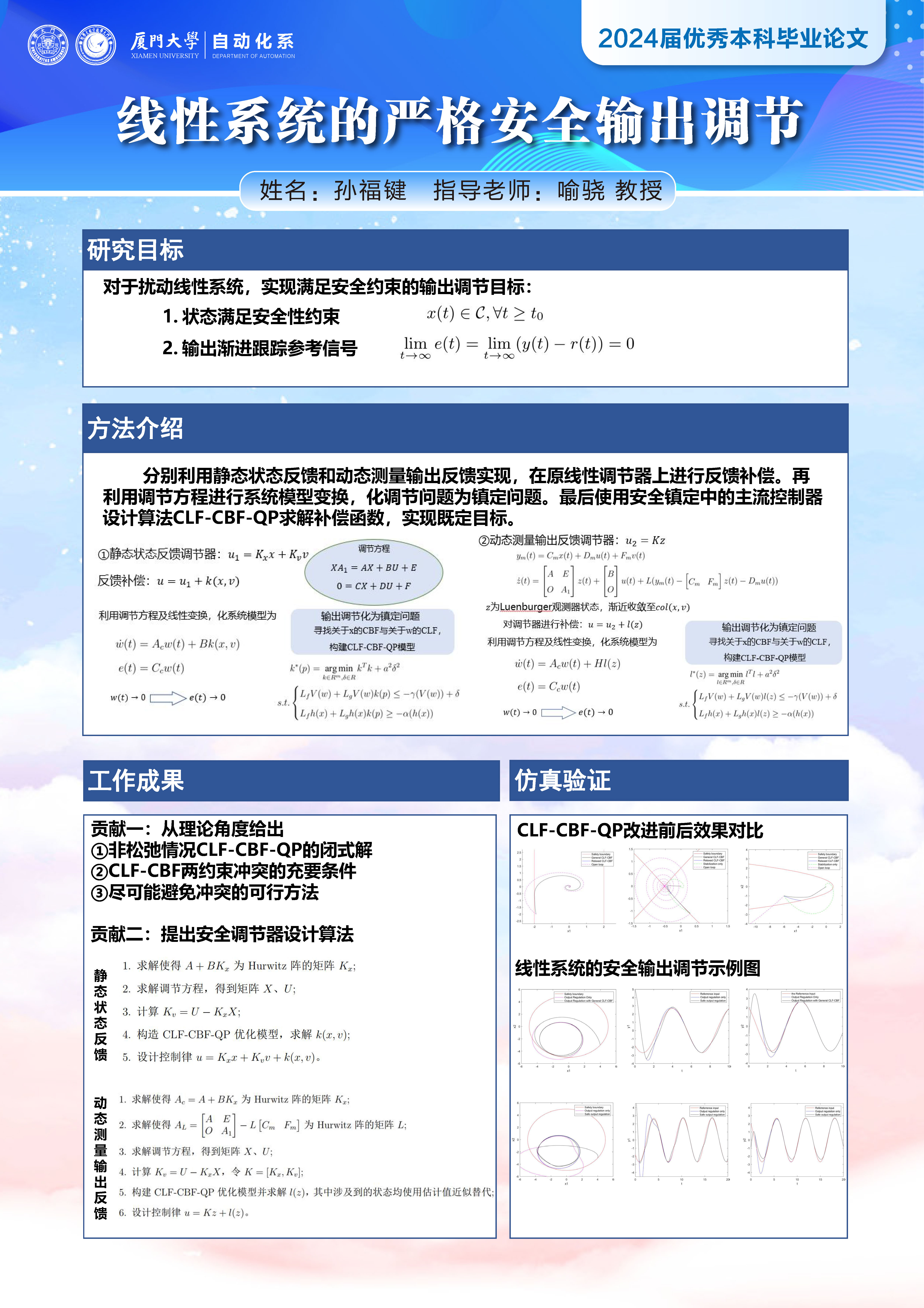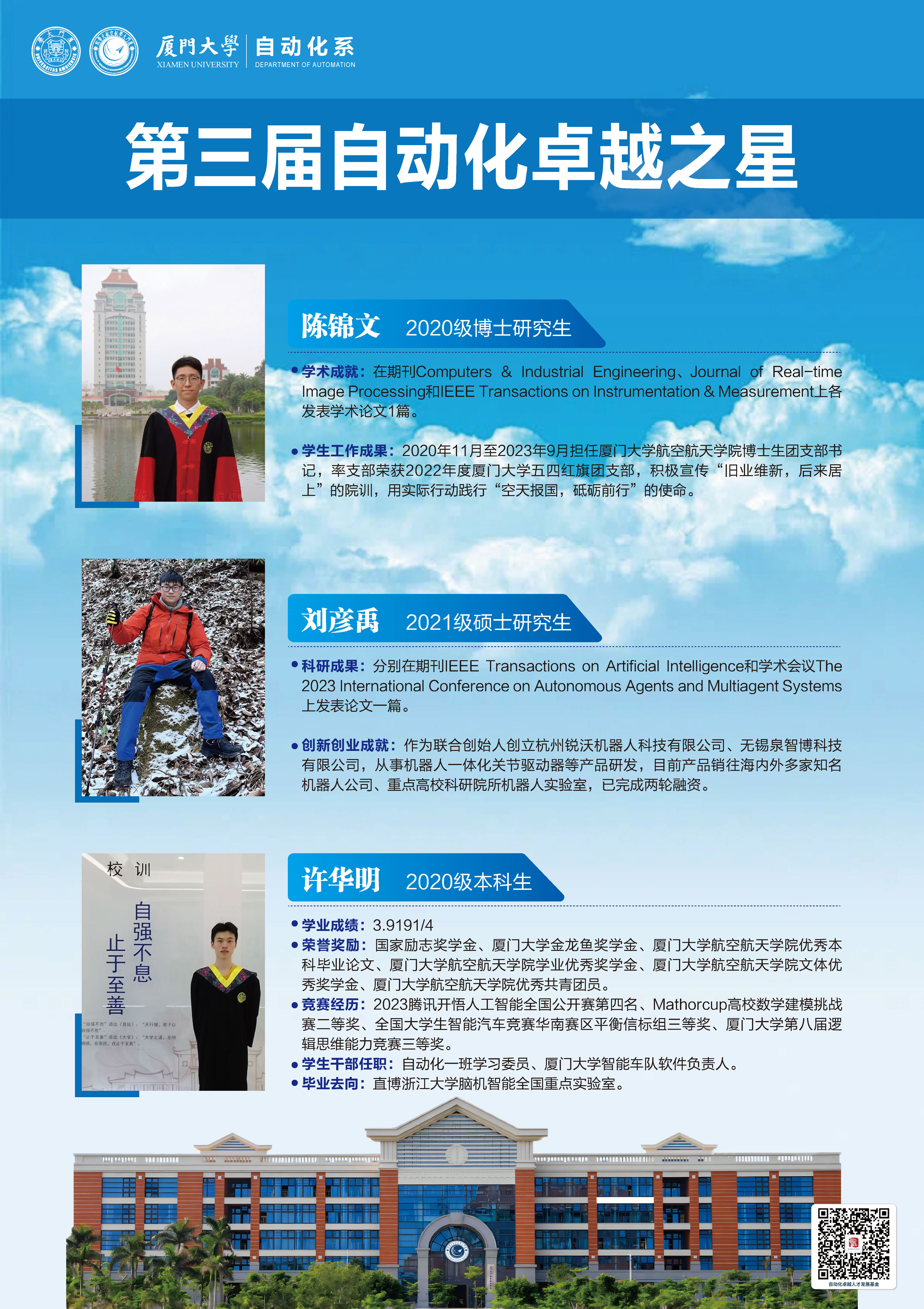 今年,经过严格的评选和审核,我们很荣幸地宣布2024届本科生蒋俊文、赖家磊、李永明、孙福键、许华明的毕业论文获评2024年自动化系本科生优秀毕业论文。2024届博士生陈锦文、2024届硕士生刘彦禹、2024届本科生许华明获得2024年自动化系“卓越之星”荣誉称号及奖金。