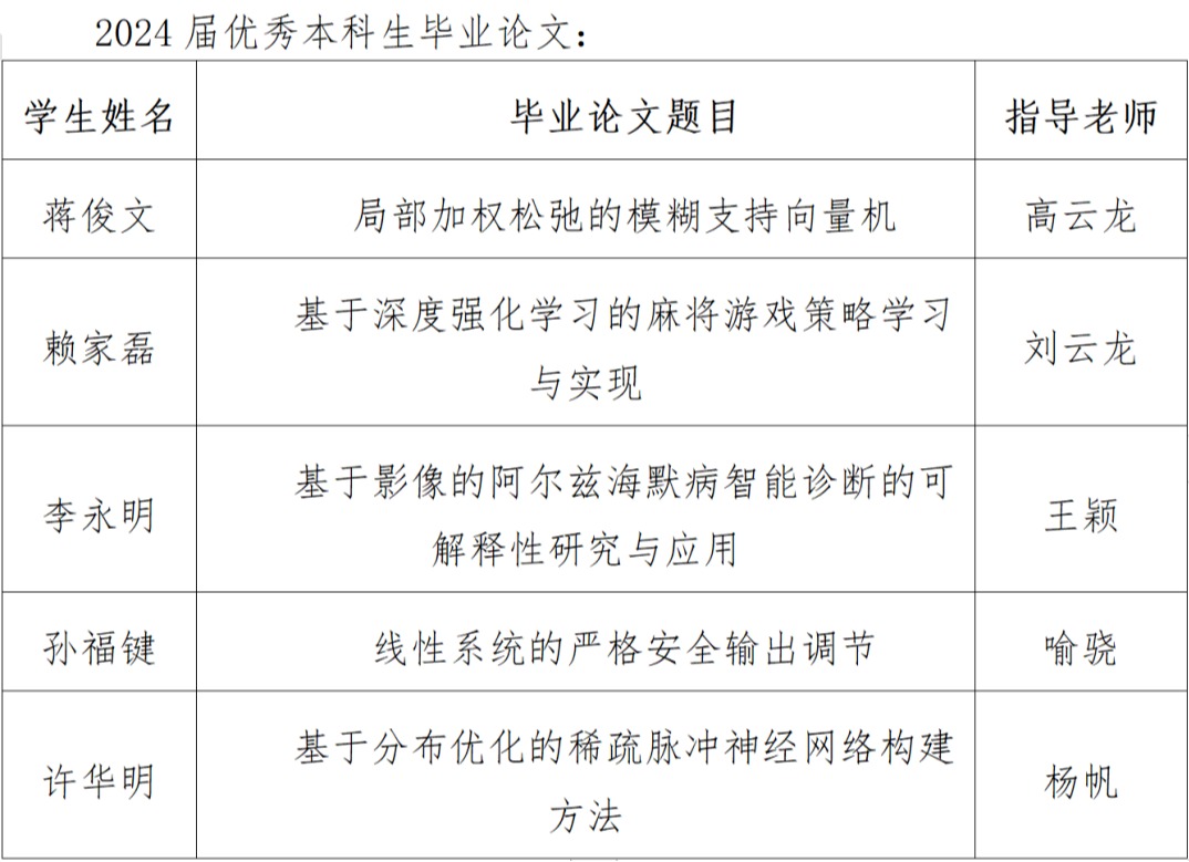 2020级本科生许华明:四年综合绩点为3.92,本科生排名第一。曾获国家励志奖学金等荣誉称号、腾讯开悟人工智能全国公开赛第四名等竞赛奖项。