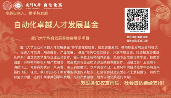 活动伊始,主持人回顾了自动化卓越人才发展基金的由来与愿景。“基金”于厦门大学百年校庆前夕由自动化系系友发起,旨在促进学生在校培养、校友终生发展、教师职业发展三者有机统一。三年来,卓越人才基金坚持评选优秀毕业论文、年度卓越之星,支持学术专刊出版,改善研究生工位,为人才培养提供了有力支撑服务。