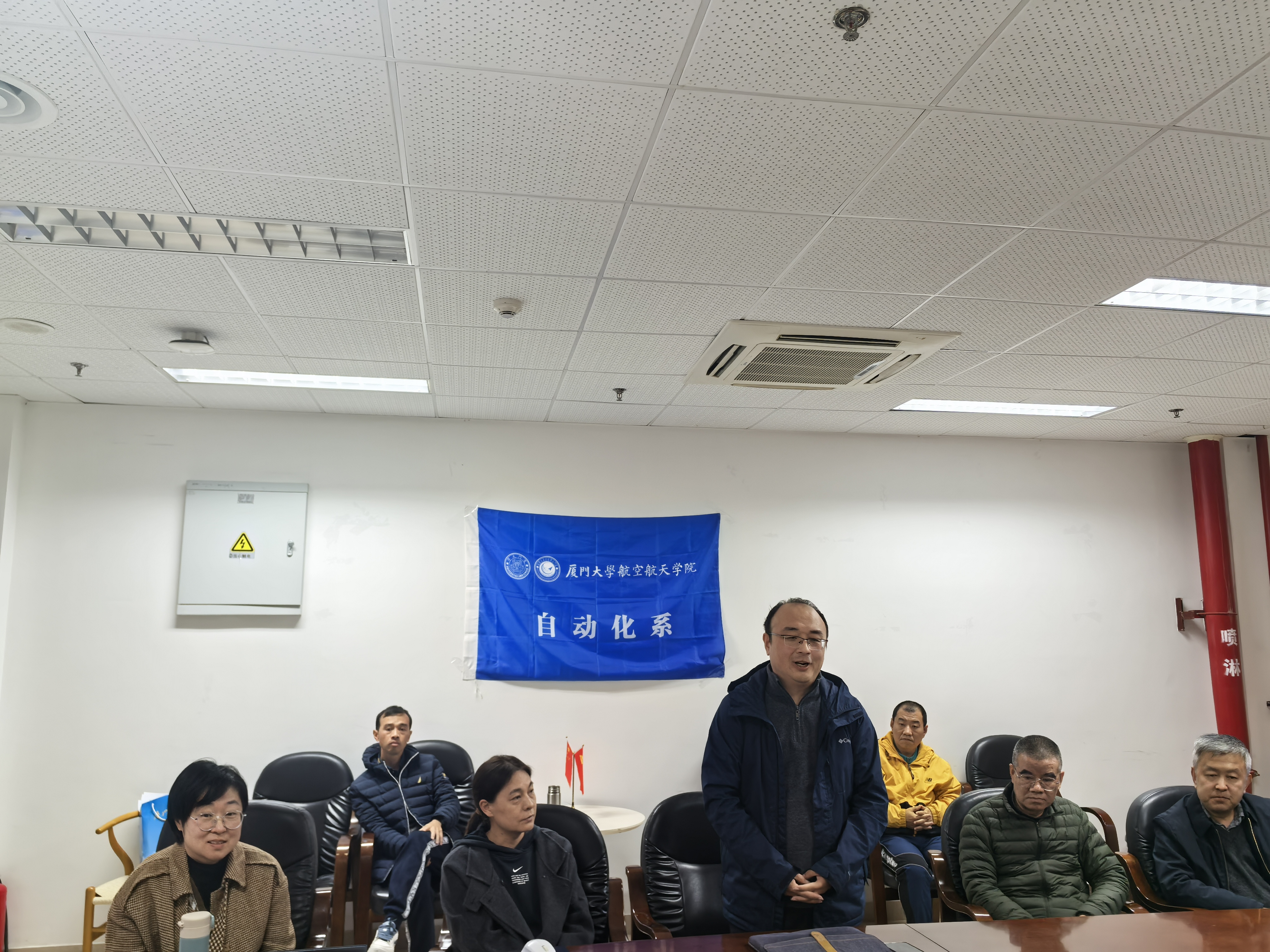 2024年12月23日下午,自动化系教师会议于航空航天学院575会议室召开。会议由系主任洪文兴主持,全系教师出席。会议伊始,航空航天学院党委书记廖志丹宣布了新的任命并发表了讲话。随后,新任副系主任刘利军和王靖瑶分别进行了表态发言,并与全体教师合影留念。