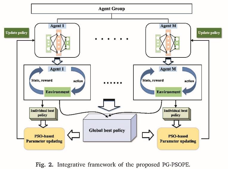 刘暾东教授的硕士生李丽端同学2020年在JCR2区期刊Engineering Applications of Artificial Intelligence 上发表论文一篇。论文针对强化学习中的无模型策略梯度方法在连续控制应用中存在因梯度估计方差大及复杂的反向传播而引起的收敛速度慢与计算复杂等问题,提出一种基于粒子群参数估计的无模型策略梯度算法。该方法引入粒子群算法训练强化学习中的策略网络以减少方差并提高收敛速度。